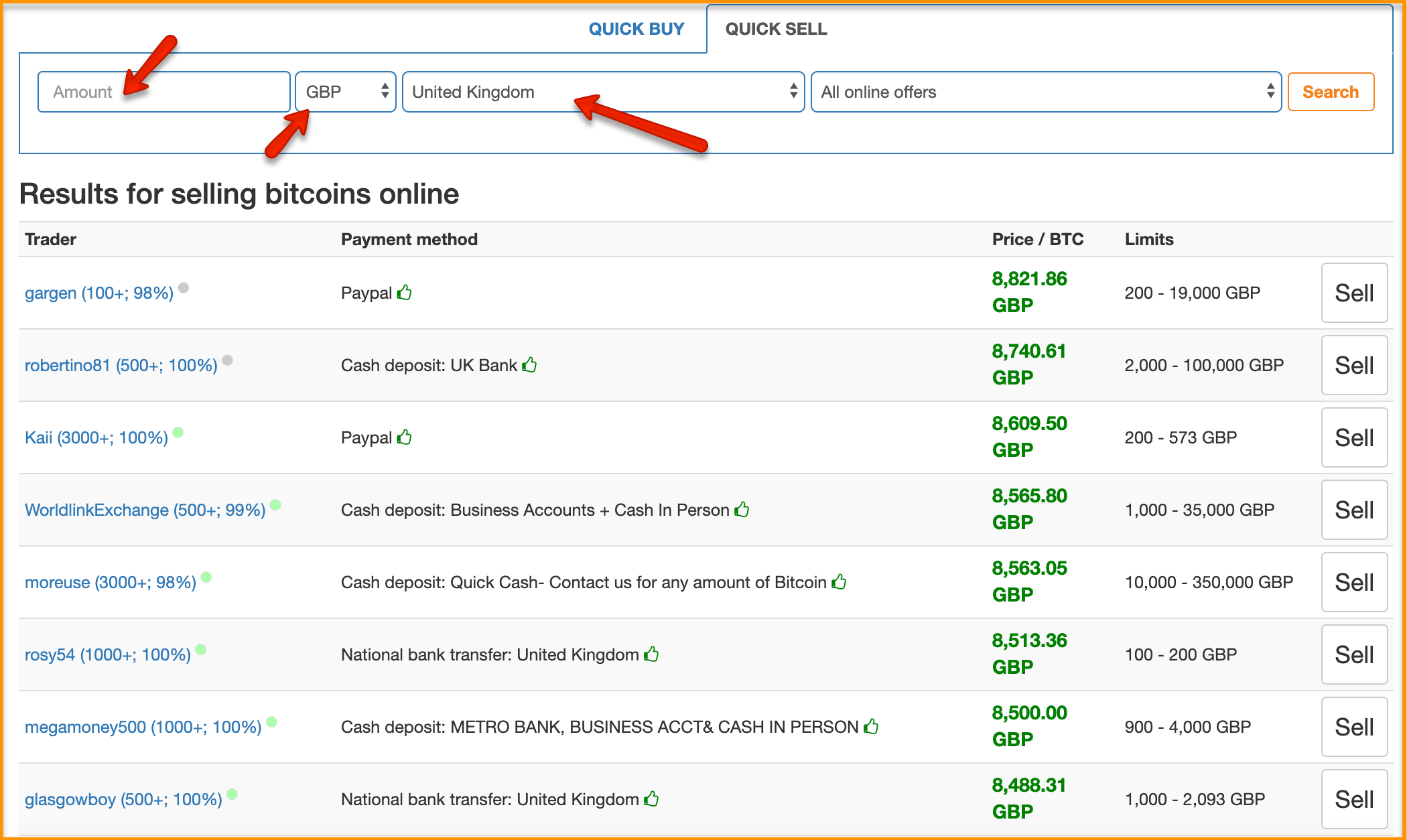 On the sell tab, select the asset you want to sell and enter the amount.;
